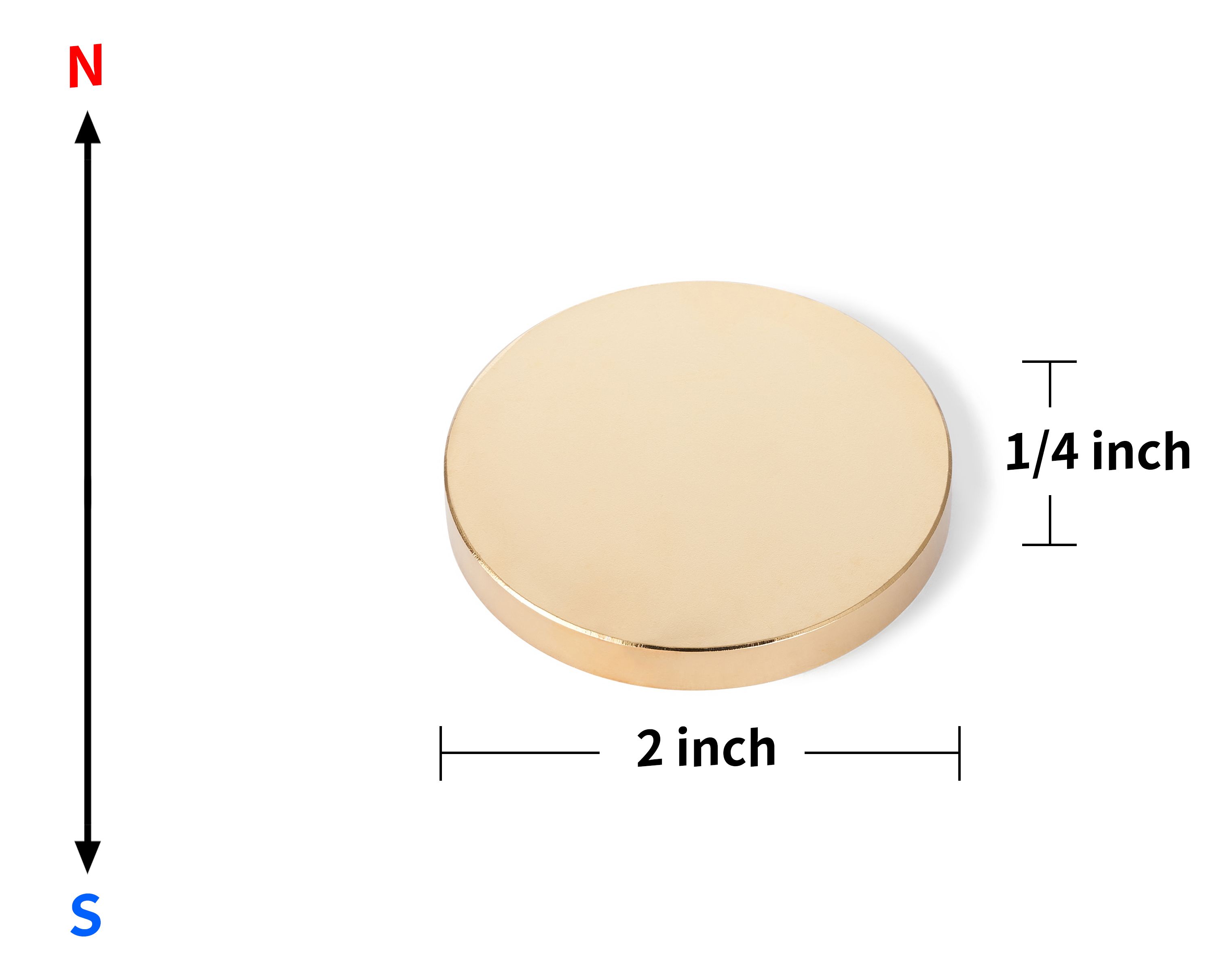 Strong Neodymium Therapy Magnets Gold Coated 2 in x 1/4 in Disc